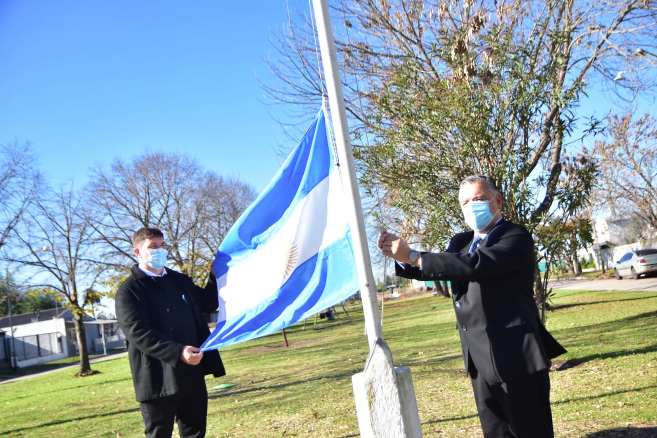 El Pte. del HCD, Prof. Fabián Blanstein acompañó al intendente municipal, Ing. Alberto Gelené, en el izamiento de la bandera en el mástil de la plazoleta del Bº 25 de Mayo, ya que por la situación epidemiológica provocada por el rebrote del Covid-19, no hubo acto oficial.