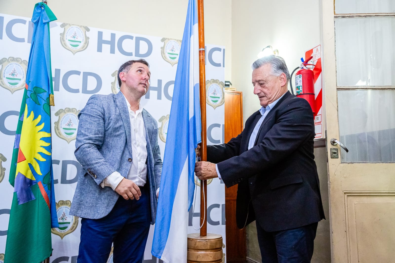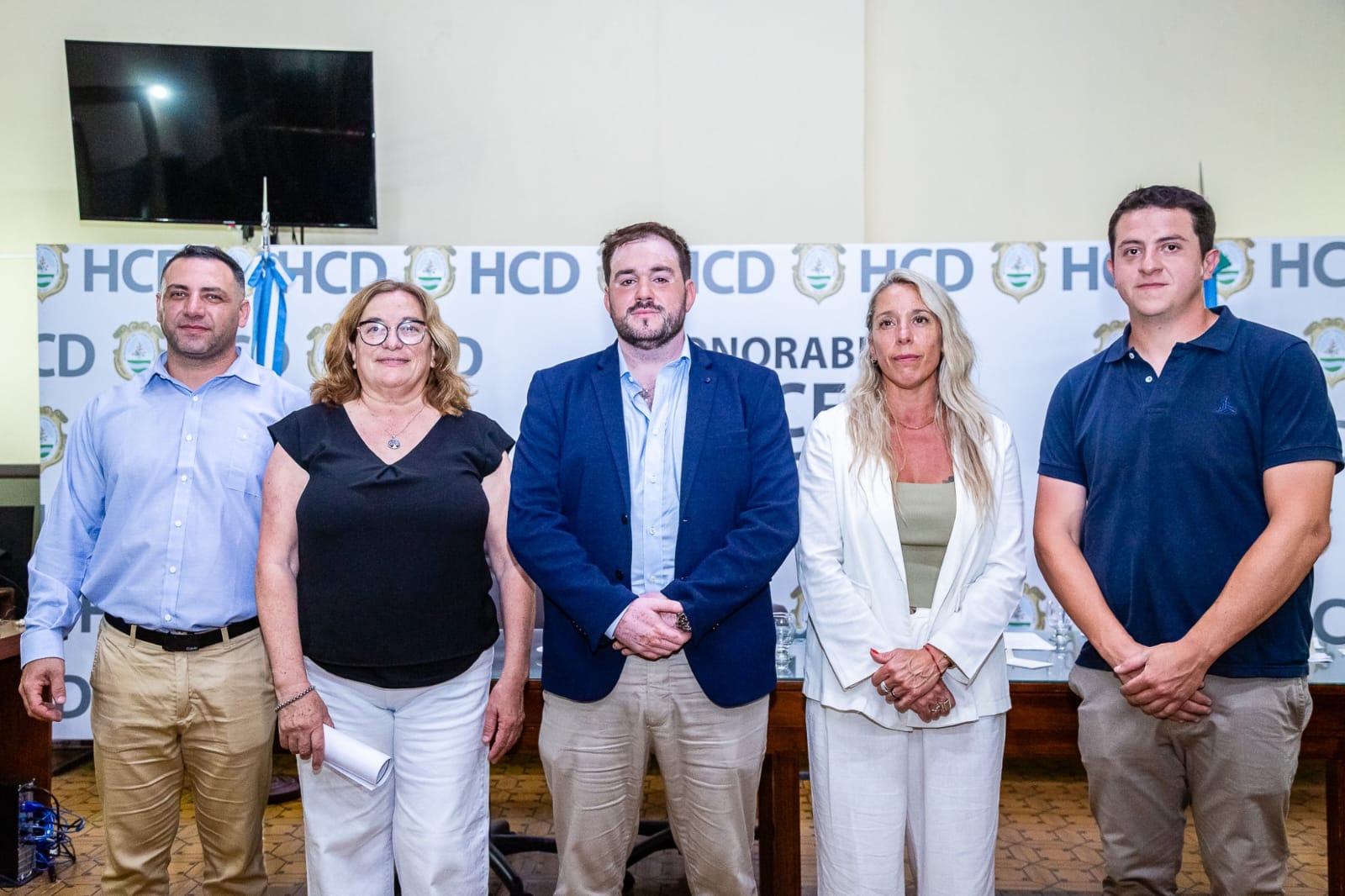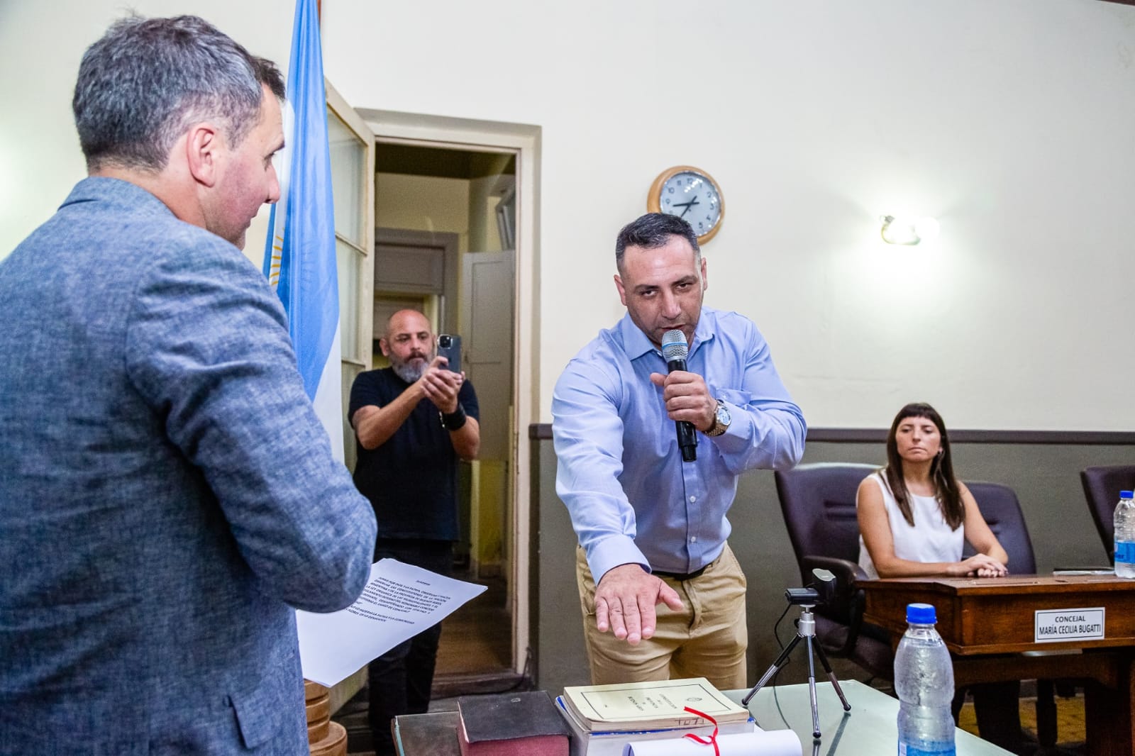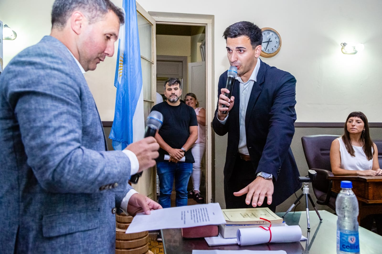 En el inicio del acto, el presidente saliente del HCD, Prof. Fabián Blanstein, tomó juramento al concejal de mayor edad de la lista ganadora, quien asumió momentáneamente la presidencia para dar continuidad al procedimiento de traspaso. De igual manera, el concejal de menor edad —en este caso Román Caputo— tomó posesión del rol de secretario durante la jura.