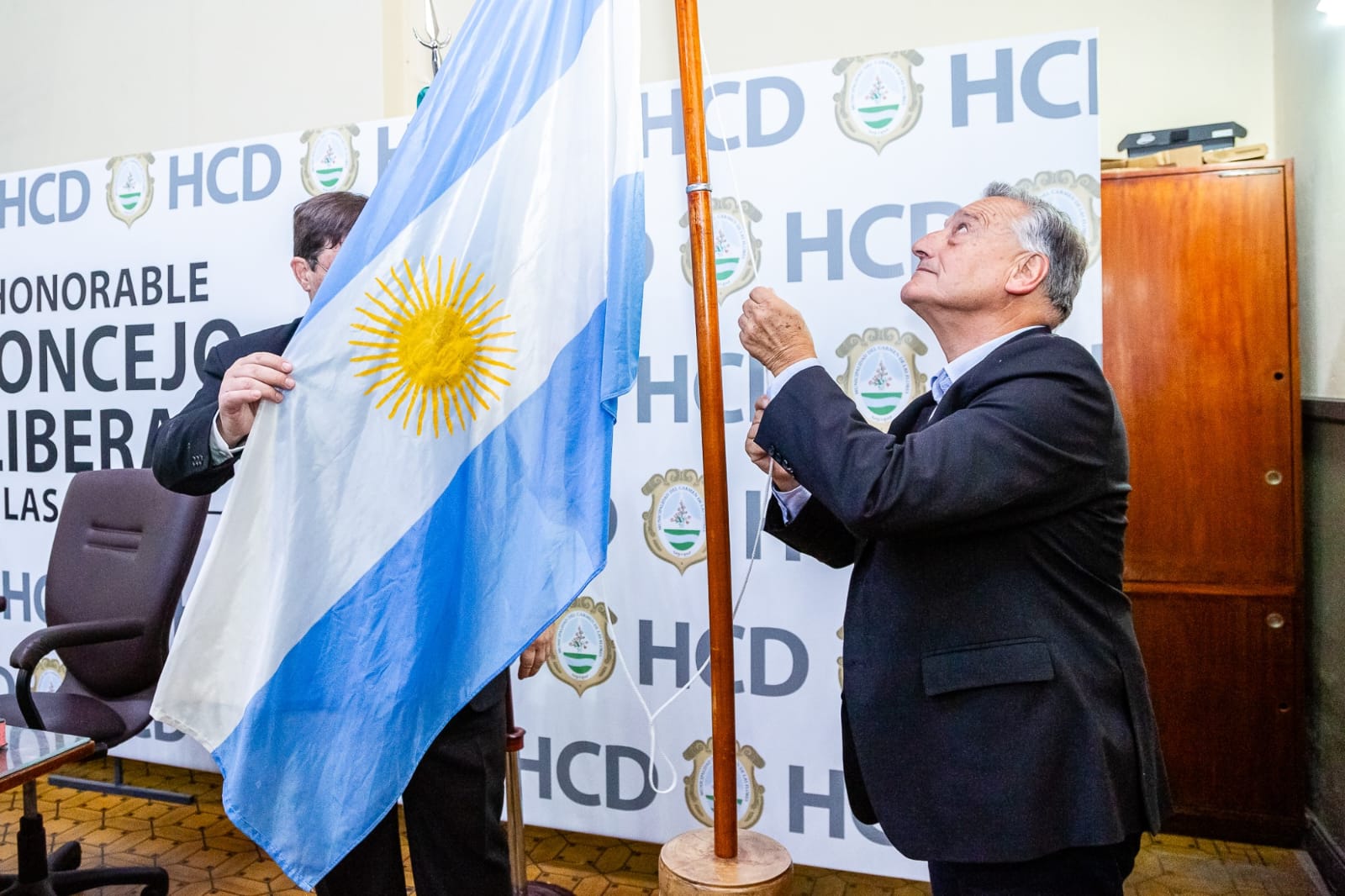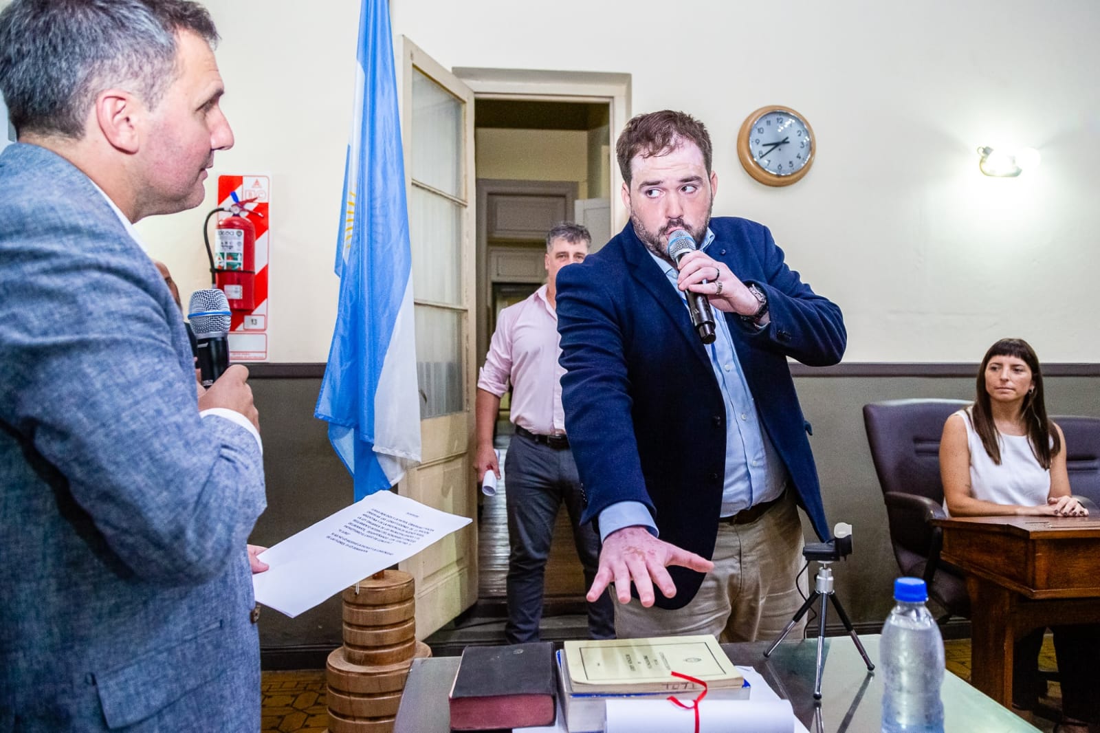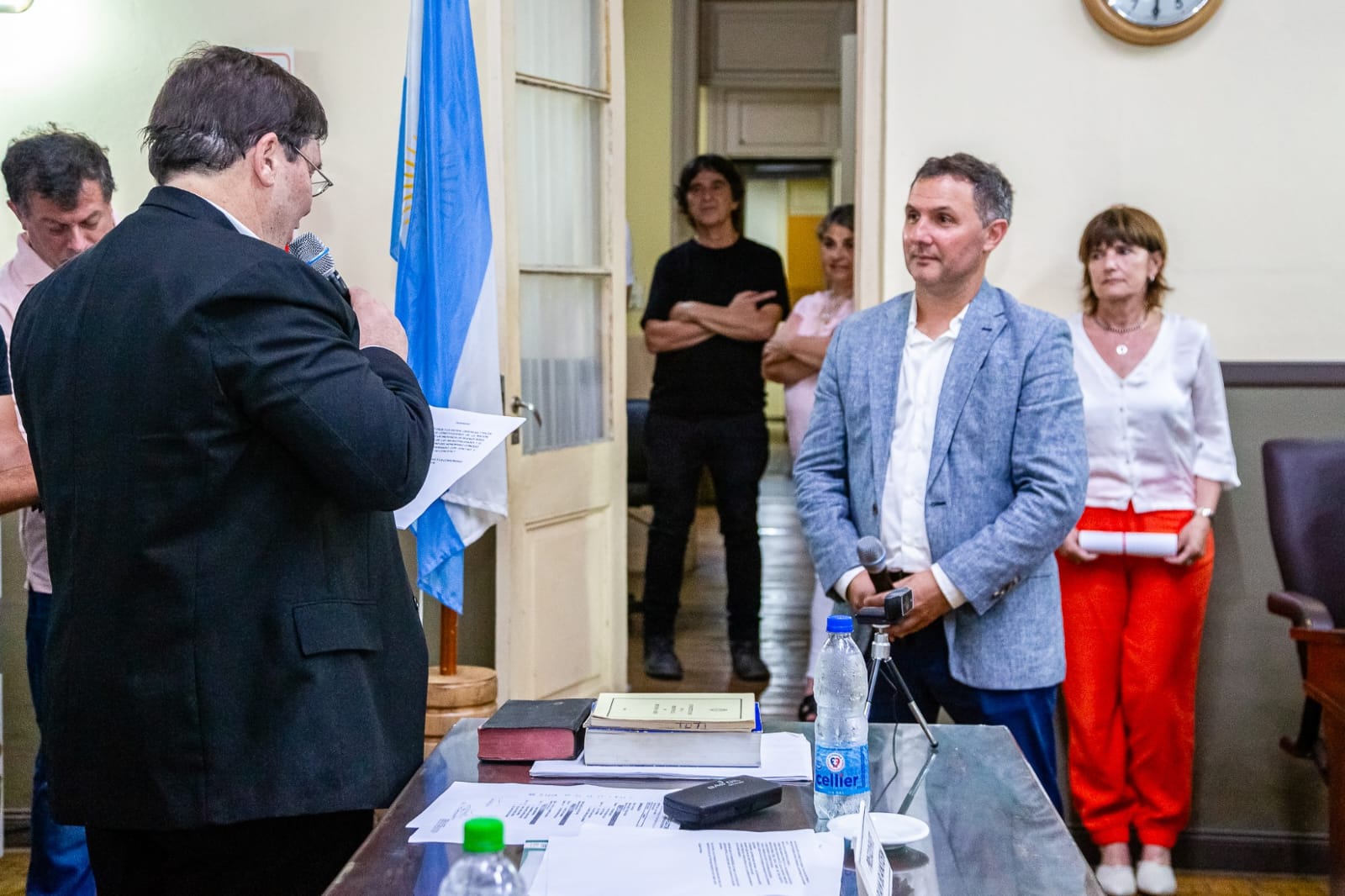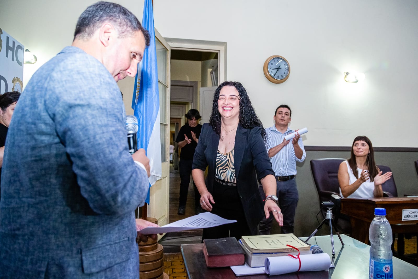 En el inicio del acto, el presidente saliente del HCD, Prof. Fabián Blanstein, tomó juramento al concejal de mayor edad de la lista ganadora, quien asumió momentáneamente la presidencia para dar continuidad al procedimiento de traspaso. De igual manera, el concejal de menor edad —en este caso Román Caputo— tomó posesión del rol de secretario durante la jura.