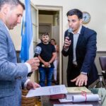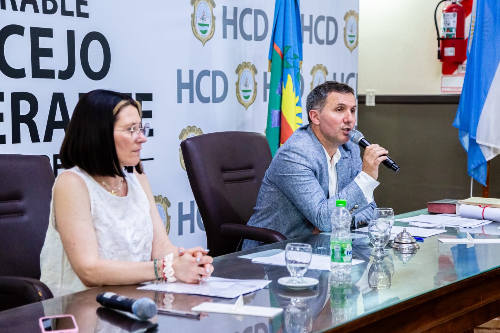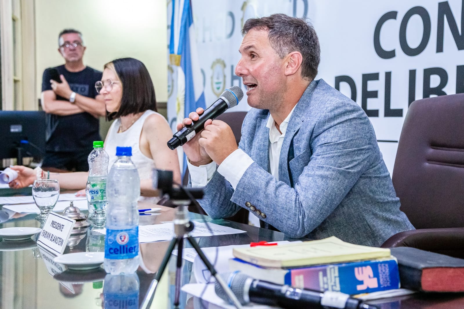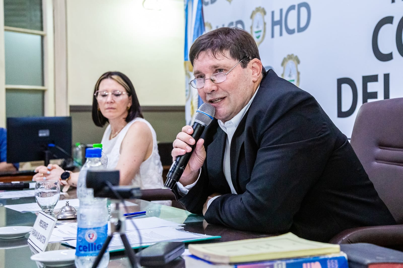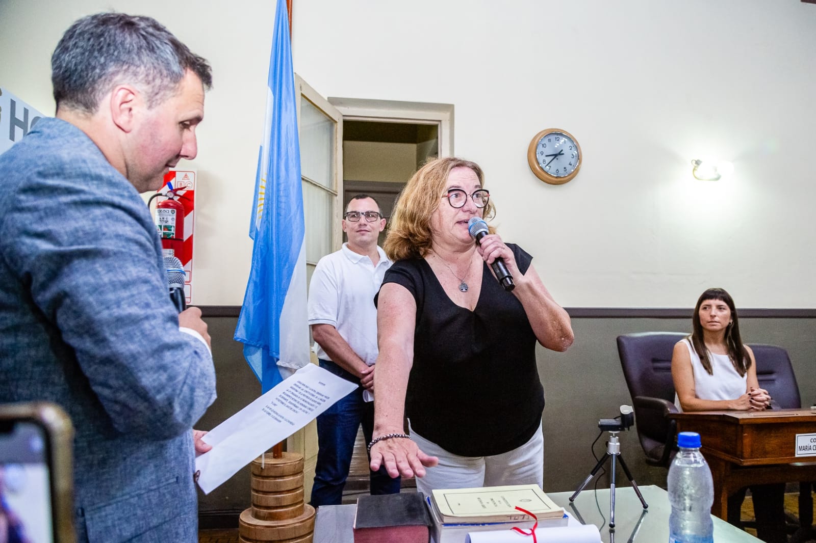 En el inicio del acto, el presidente saliente del HCD, Prof. Fabián Blanstein, tomó juramento al concejal de mayor edad de la lista ganadora, quien asumió momentáneamente la presidencia para dar continuidad al procedimiento de traspaso. De igual manera, el concejal de menor edad —en este caso Román Caputo— tomó posesión del rol de secretario durante la jura.