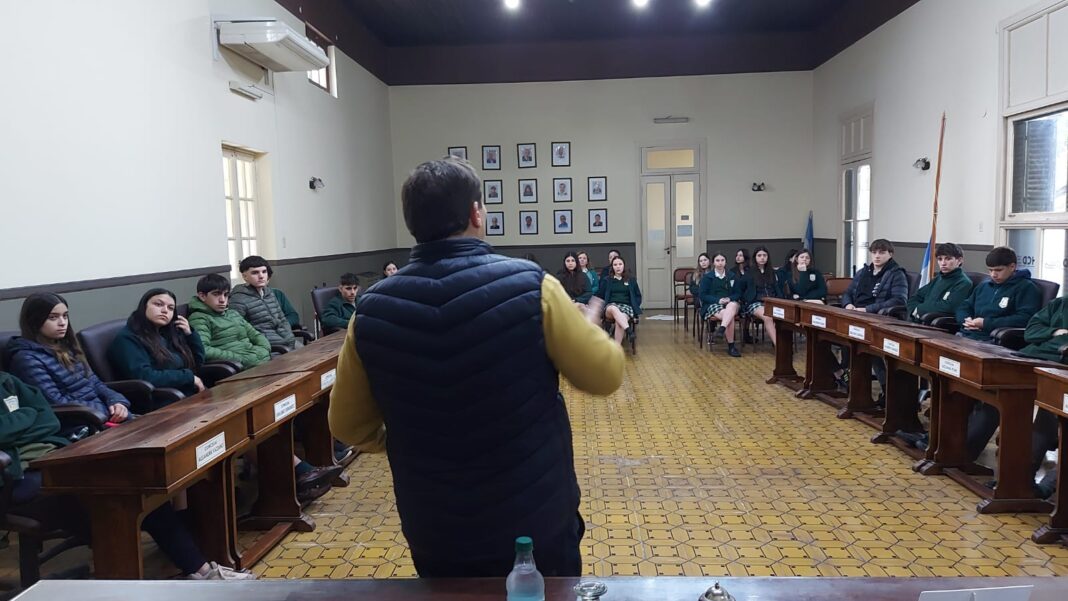 Está mañana recibimos la visita de alumnos de 5° año del Colegio San Miguel, junto a su profesora Julieta Plini. La intención era conocer el funcionamiento de la institución, en tal sentido el Pte del HCD Prof. Fabián Blanstein brindo una charla informativa, dónde explico el funcionamiento del concejo y el rol del concejal.