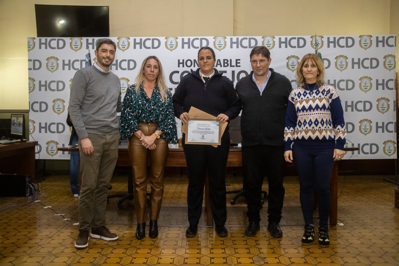 Posteriormente se le brindó un homenaje a la Sargento Bombero Voluntaria Florencia Boetto por su destacada labor llevada a cabo en el incendio forestal en el Parque Nacional Los Alerces, en la provincia de Chubut, en representación del cuartel de bombero voluntarios de las Flores como Guardia de Ceniza.