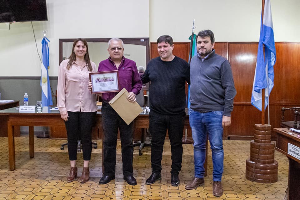 Con un recinto colmado y con emotivas palabras por parte de la concejal Luciana Plini, el concejal Leo Municoy y del Pte del HCD Prof. Fabián Blanstein, se le hizo entrega de un presente al Prof. Polito. También Mirta Prasak en nombre de los integrantes del Coro Polifónico brindó unas cálidas palabras hacia el homenajeado.