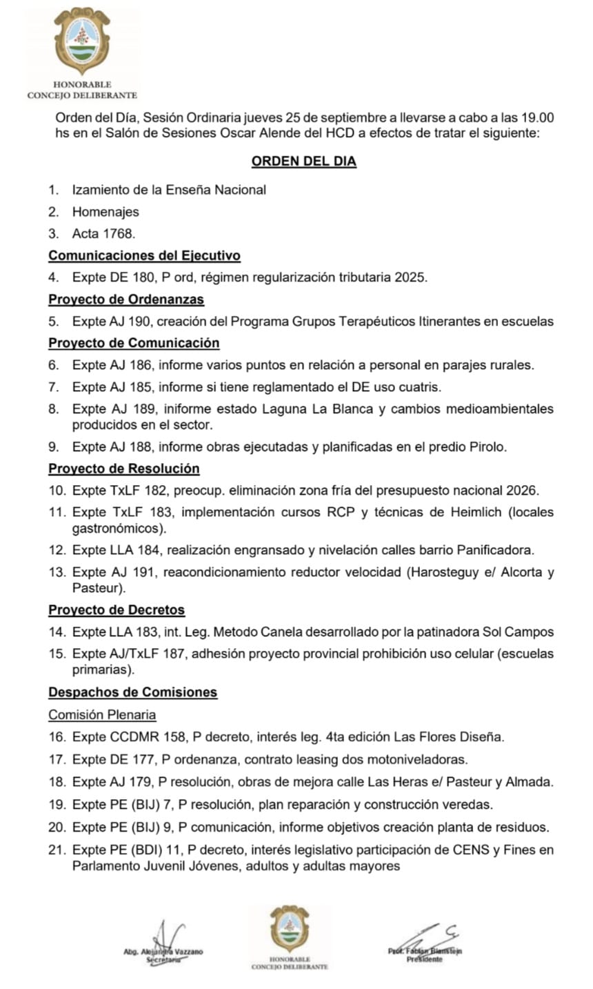 Este jueves 25 de septiembre se realizó una nueva Reunión de Comisión Parlamentaria. En la misma, el presidente Prof. Fabian Blanstein, junto a Ezequiel Coronel (Todos por Las Flores), Guillermina Gómez (Adelante Juntos) e Ignacio Peregrina (Libertad Avanza) analizaron los diferentes puntos del Orden del Día para lo que será la Sesión Ordinaria de hoy, desde las 19 horas, en el salón Oscar Alende.