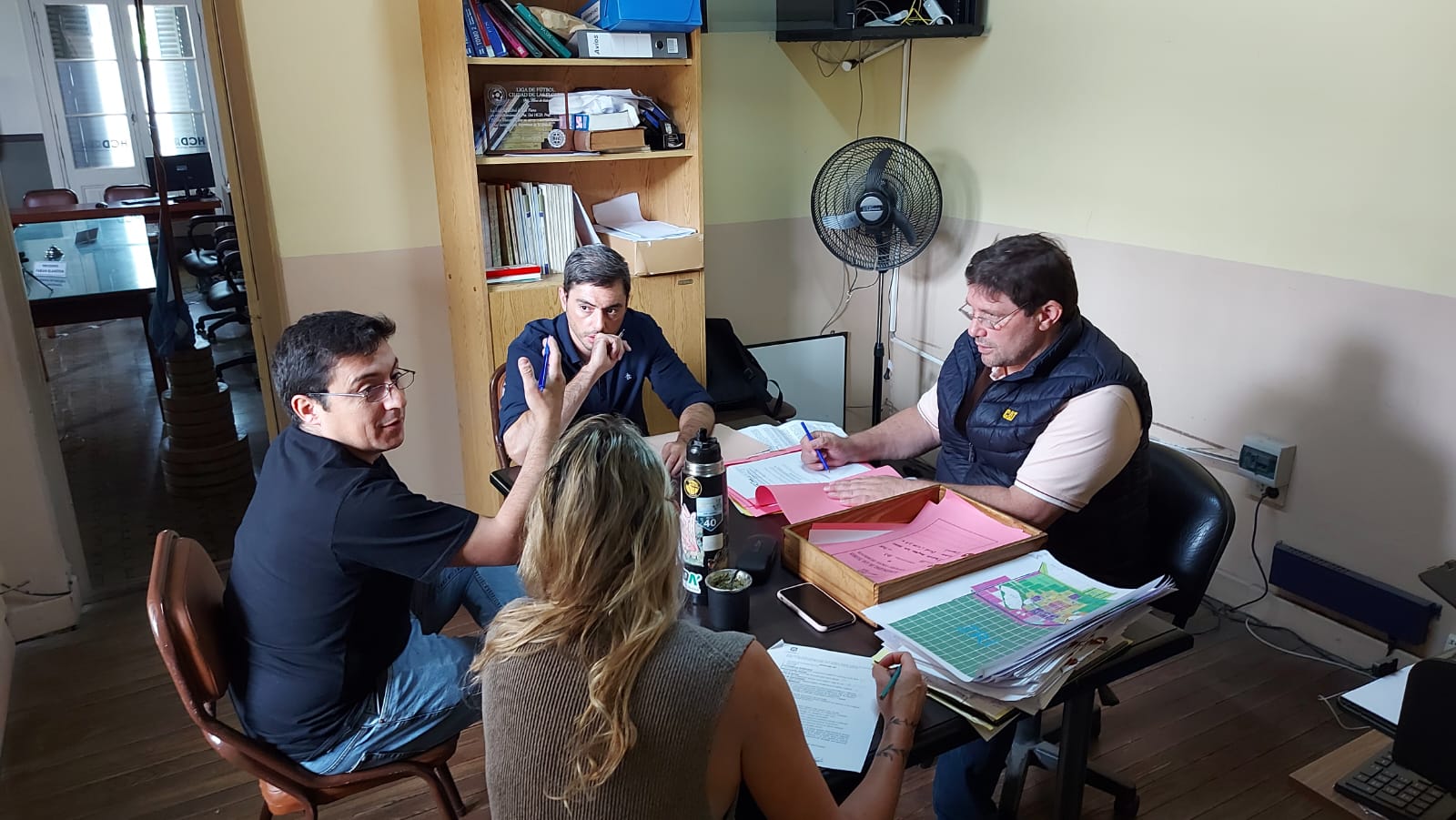 Este jueves 16 se realizó una nueva Reunión de Comisión Parlamentaria donde el presidente del HCD, Prof. Fabián Blanstein, se reunió con los concejales Sebastián Lizarraga (bloque Adelante Juntos), Luciana Ganum Cocola (Libertad Avanza) y Ezequiel Coronel (Todos por Las Flores) para analizar los diferentes puntos del Orden del Día de cara a lo que será la Sesión Ordinaria de hoy, desde las 19 horas, en el salón Oscar Alende.