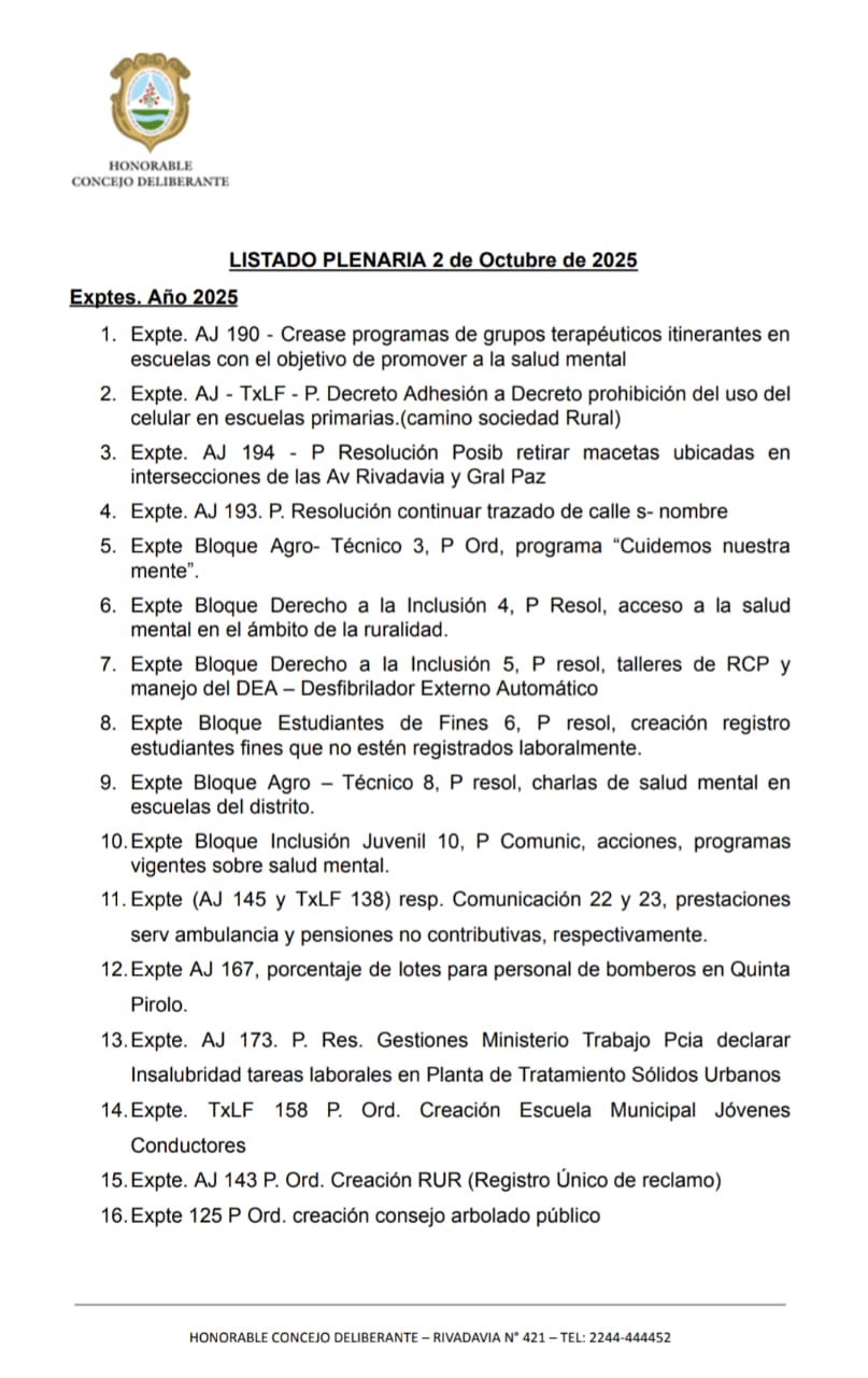 Este jueves 2 de octubre se llevó a cabo una nueva Reunión Plenaria en el Honorable Concejo Deliberante. El presidente, Prof. Fabián Blanstein, convocó al Director General de Legal y Técnica, Dr. Javier Di Giano, para dialogar con los concejales sobre proyectos trabajados en Comisión.
