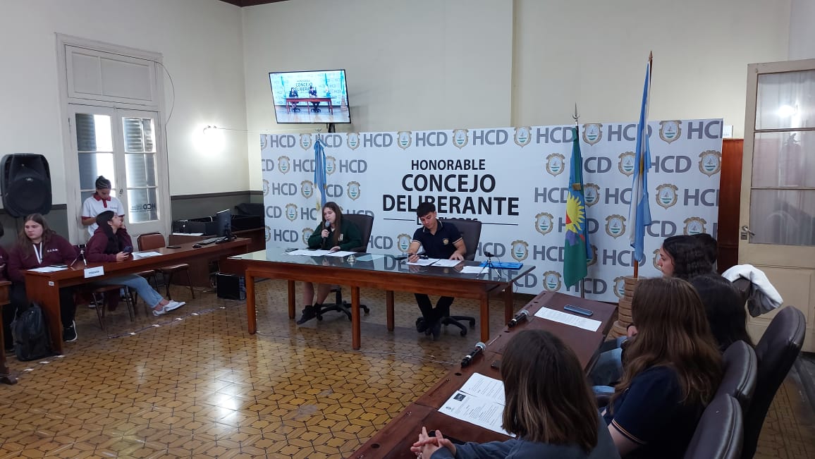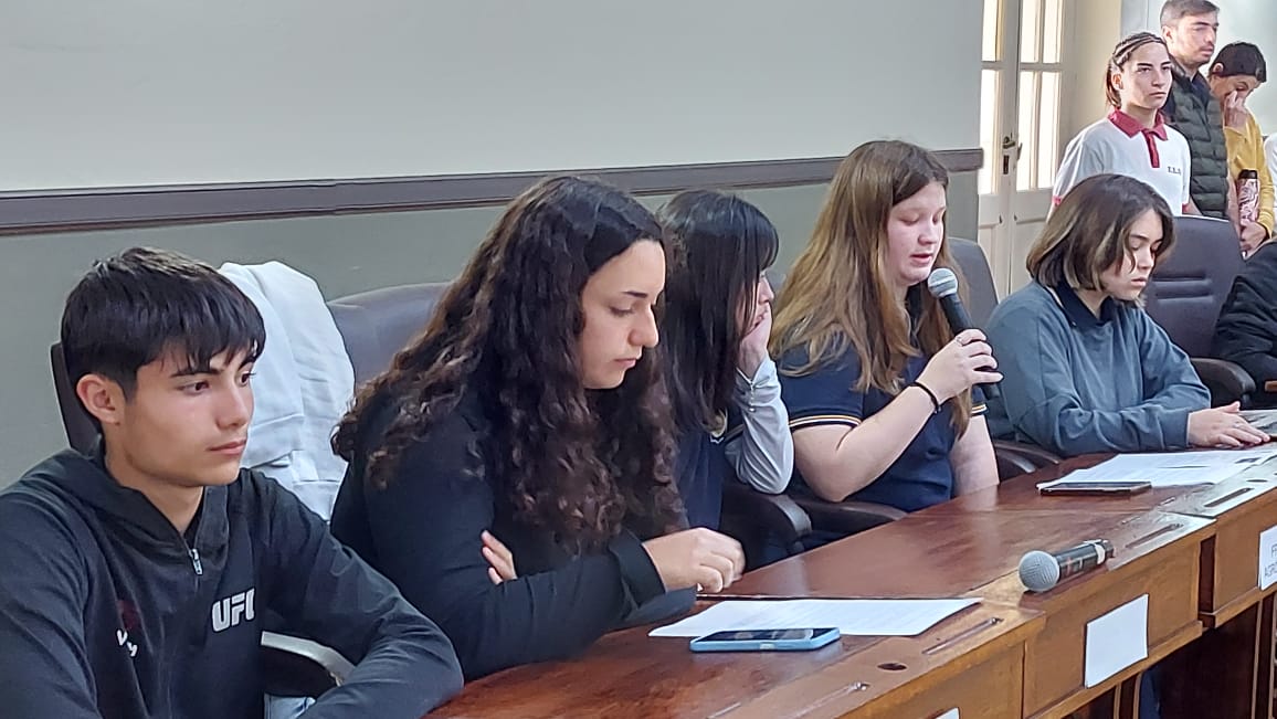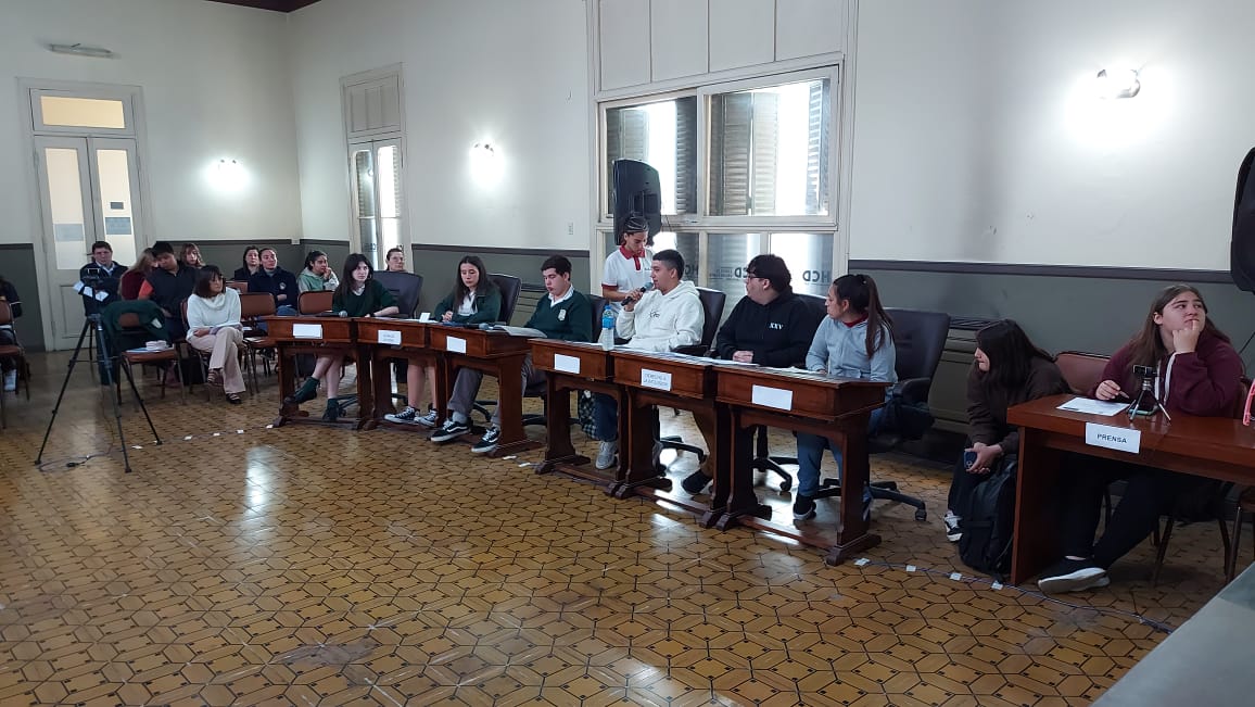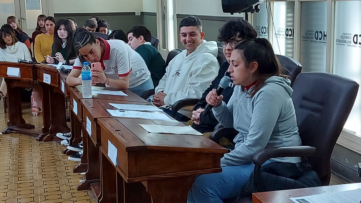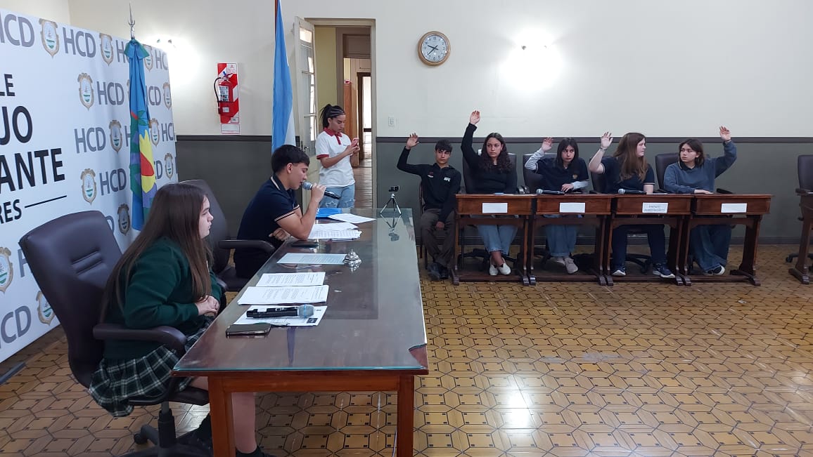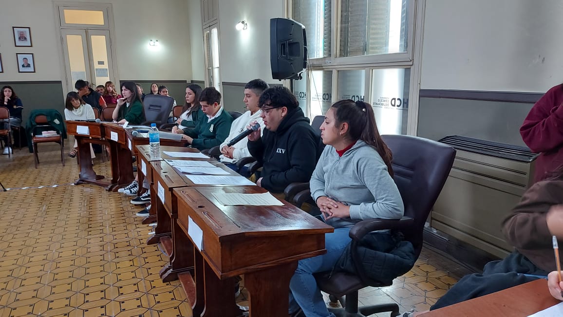 El pasado jueves 30 de octubre se desarrolló la segunda sesión del Parlamento Estudiantil 2025. Este espacio promueve la participación y la representación de los estudiantes de la ciudad. Se hicieron presentes estudiantes, docentes y autoridades del HCD. La actividad comenzó 9.25 am con la apertura del Presidente Lautaro Duarte (Escuela Técnica), Vicepresidenta Uma Cieza (Escuela Técnica) y Secretaria Sofía Noguera (Colegio San Miguel). Posteriormente se procedió al izamiento de la Bandera y la lectura del Orden del Día.