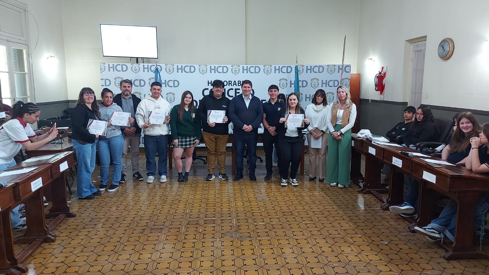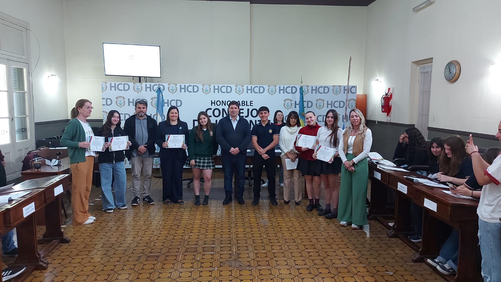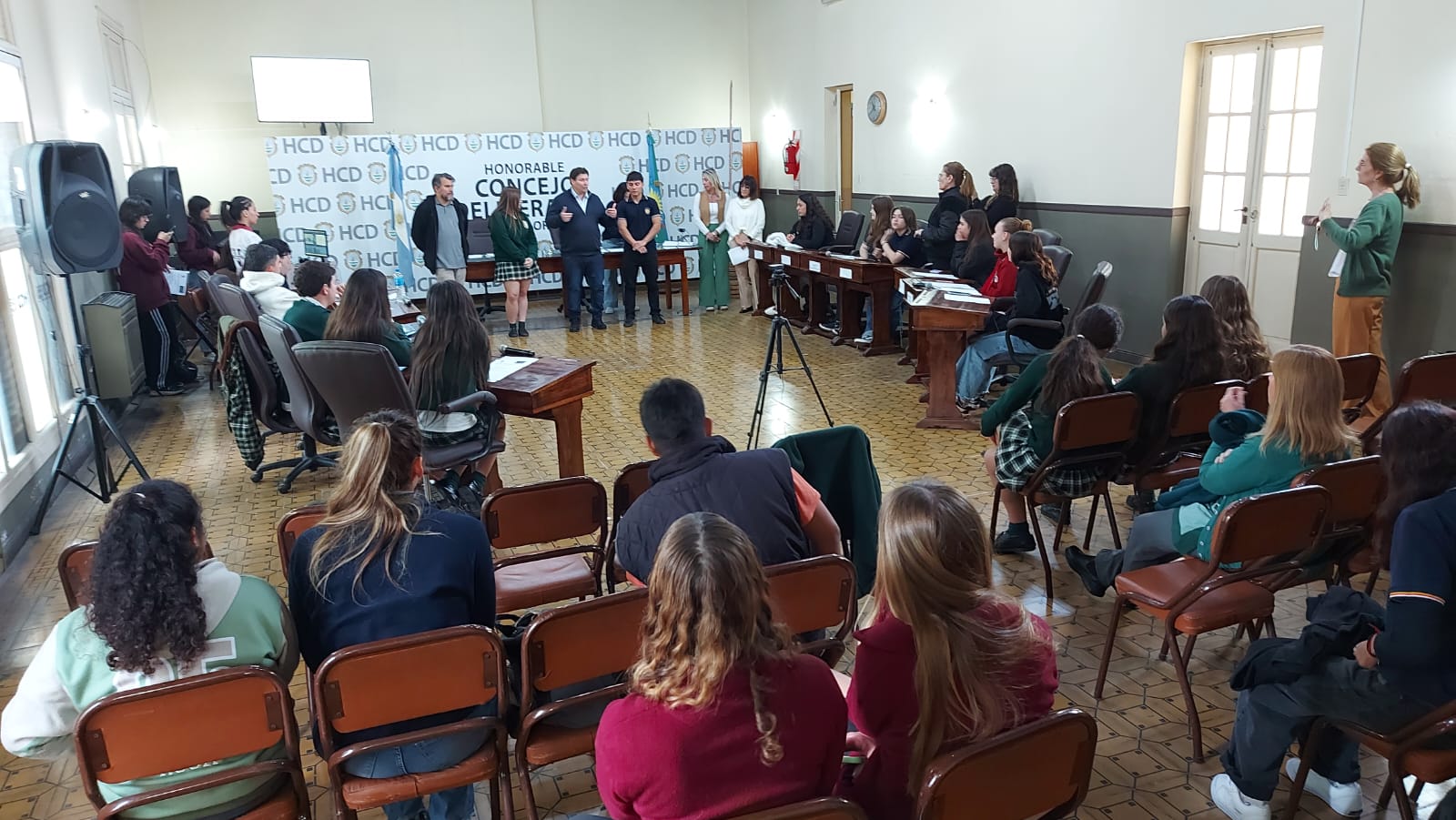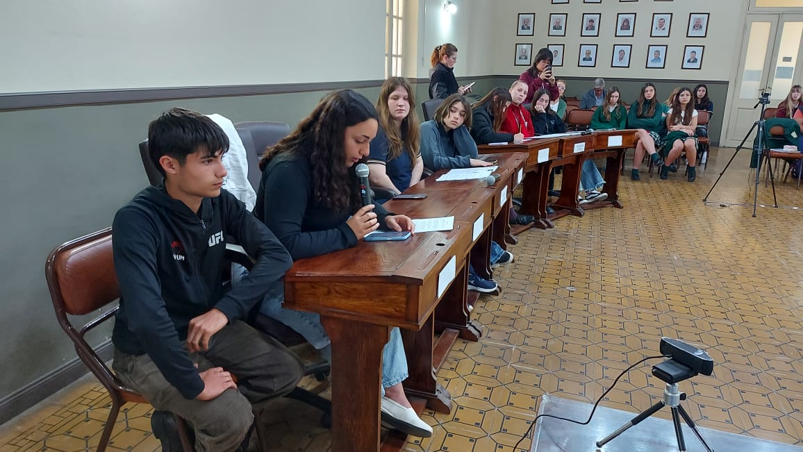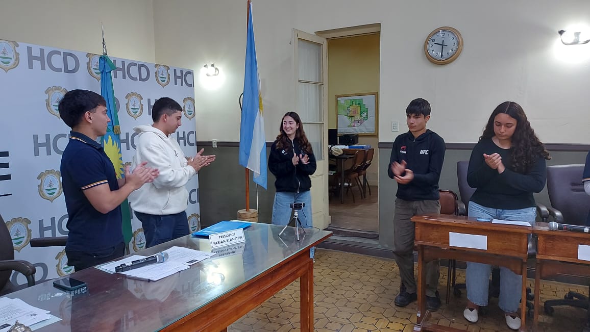 El pasado jueves 30 de octubre se desarrolló la segunda sesión del Parlamento Estudiantil 2025. Este espacio promueve la participación y la representación de los estudiantes de la ciudad. Se hicieron presentes estudiantes, docentes y autoridades del HCD. La actividad comenzó 9.25 am con la apertura del Presidente Lautaro Duarte (Escuela Técnica), Vicepresidenta Uma Cieza (Escuela Técnica) y Secretaria Sofía Noguera (Colegio San Miguel). Posteriormente se procedió al izamiento de la Bandera y la lectura del Orden del Día.