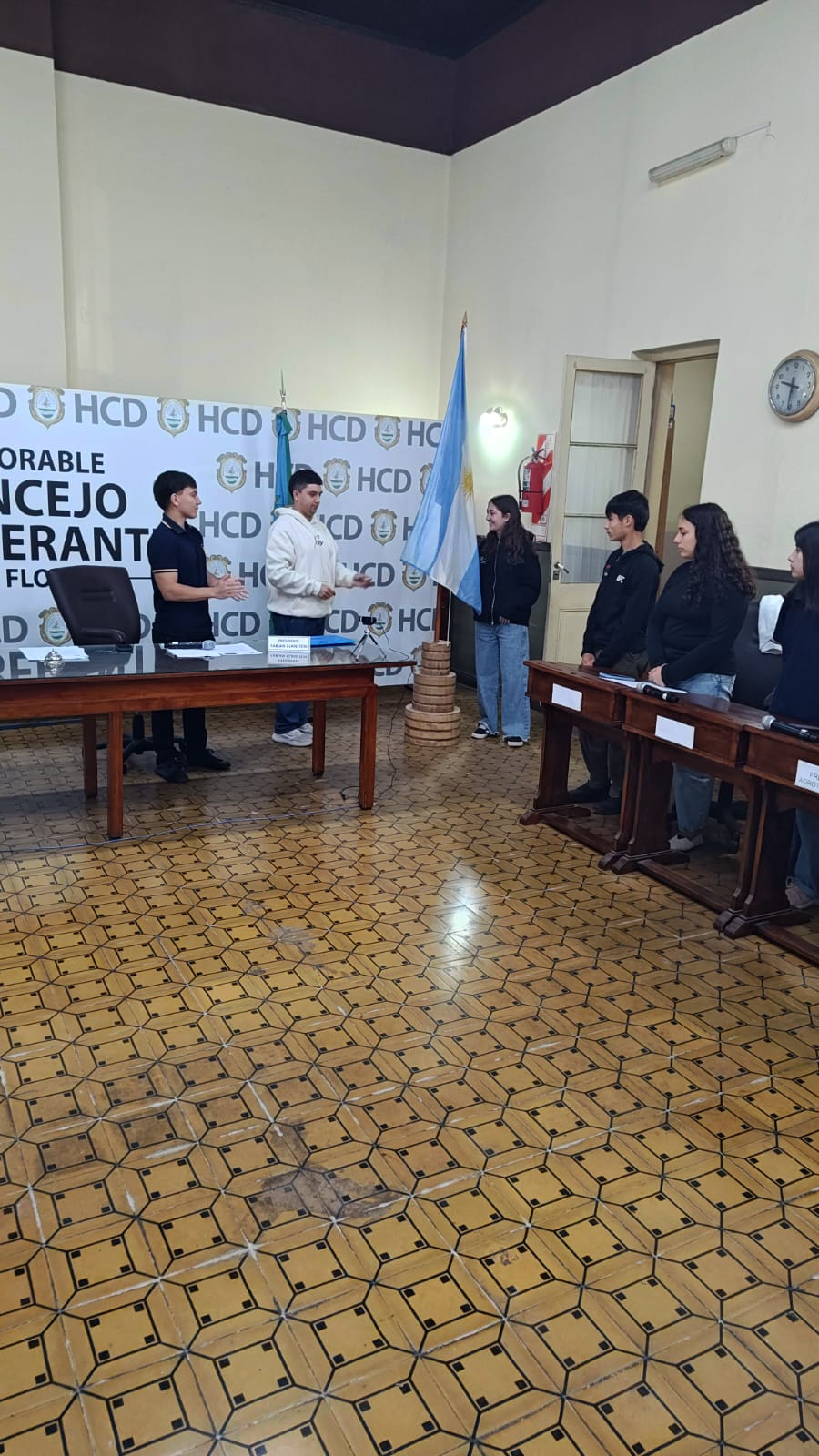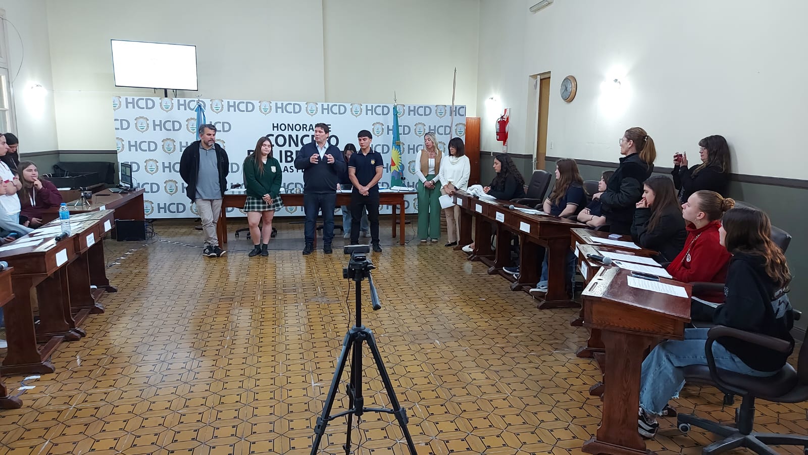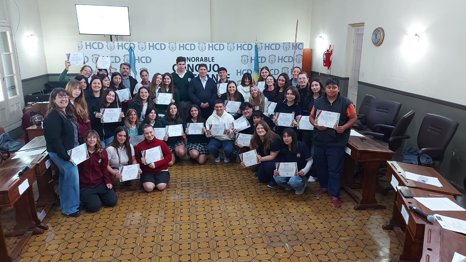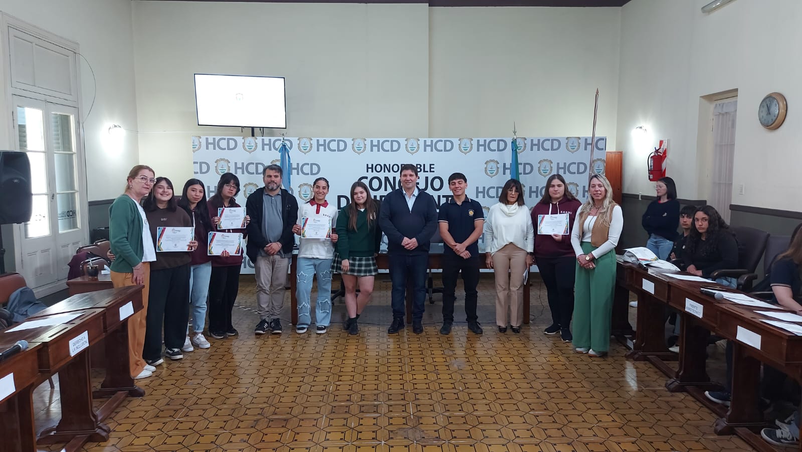 El pasado jueves 30 de octubre se desarrolló la segunda sesión del Parlamento Estudiantil 2025. Este espacio promueve la participación y la representación de los estudiantes de la ciudad. Se hicieron presentes estudiantes, docentes y autoridades del HCD. La actividad comenzó 9.25 am con la apertura del Presidente Lautaro Duarte (Escuela Técnica), Vicepresidenta Uma Cieza (Escuela Técnica) y Secretaria Sofía Noguera (Colegio San Miguel). Posteriormente se procedió al izamiento de la Bandera y la lectura del Orden del Día.