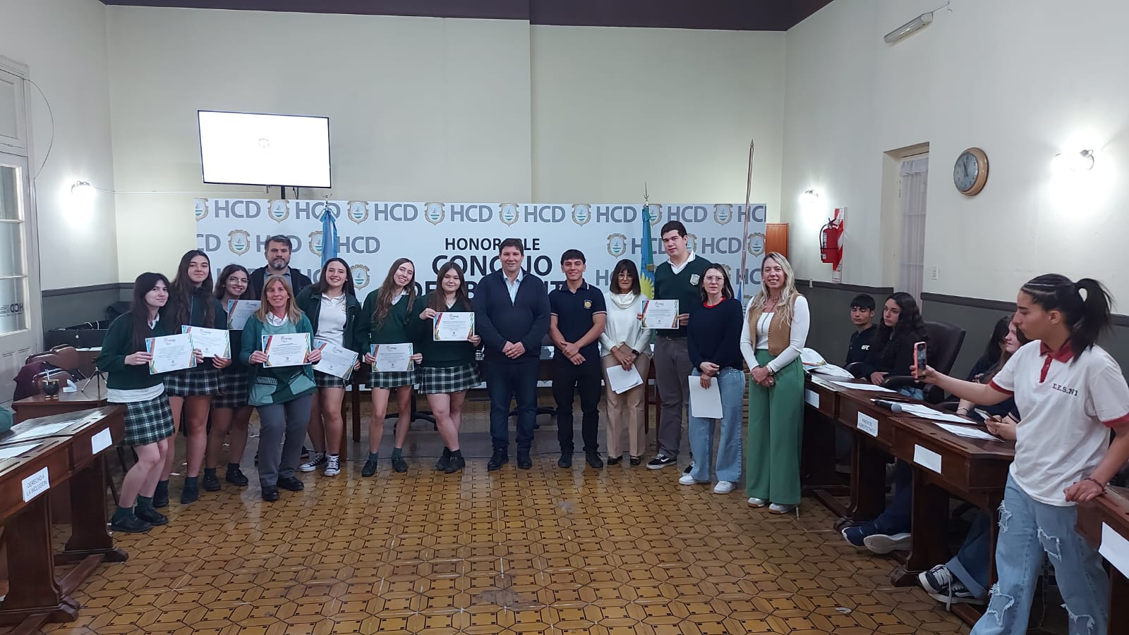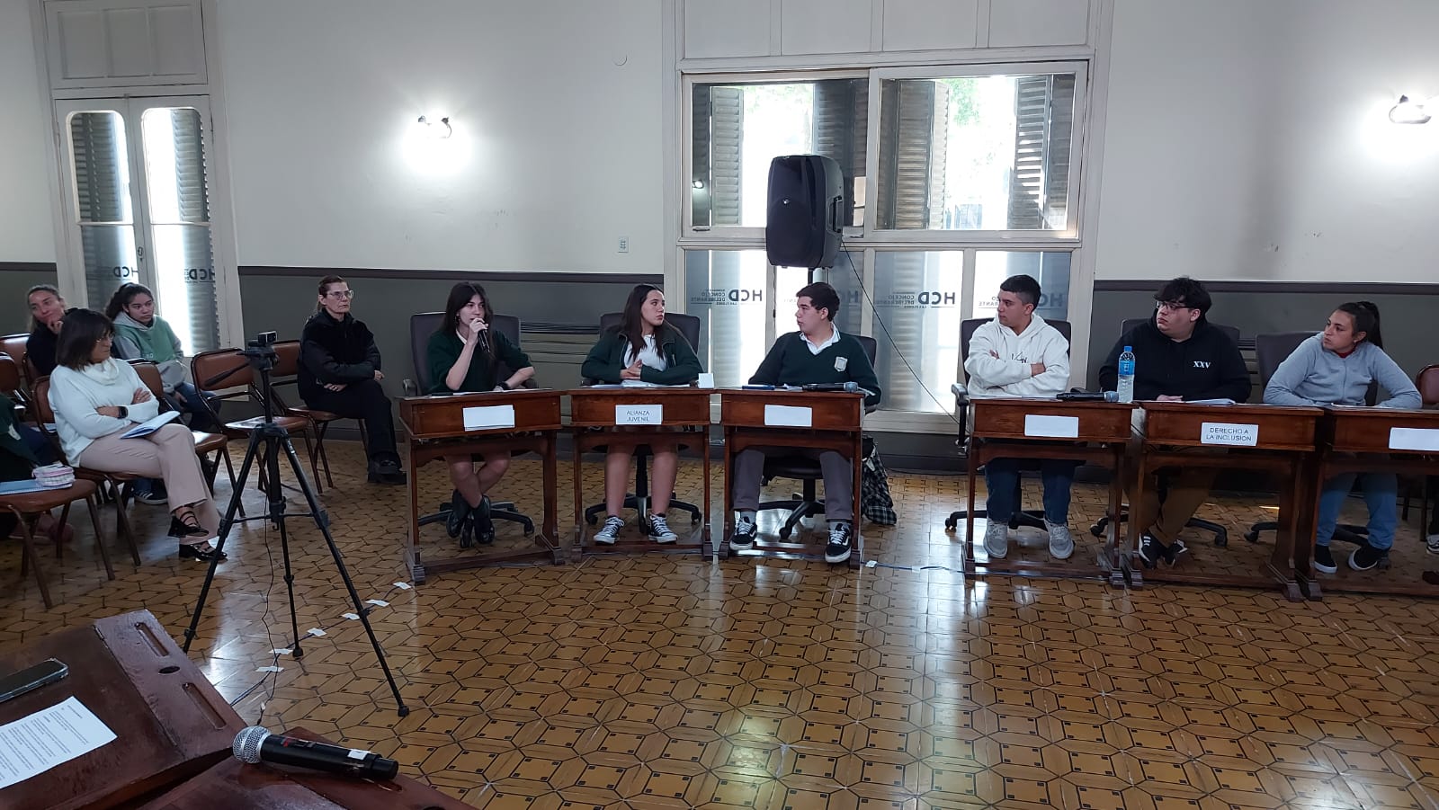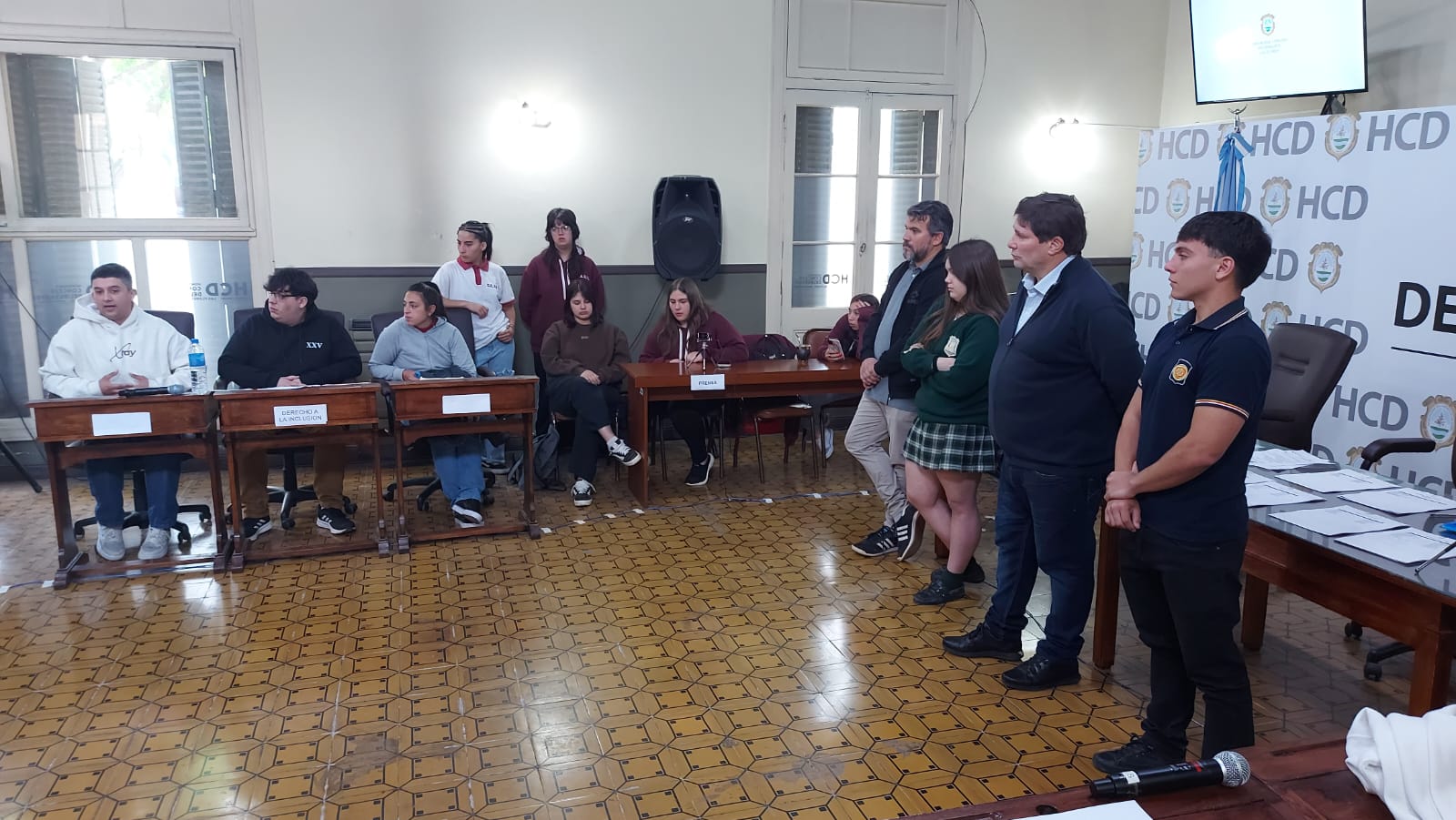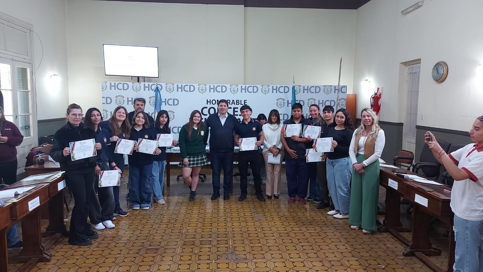 El pasado jueves 30 de octubre se desarrolló la segunda sesión del Parlamento Estudiantil 2025. Este espacio promueve la participación y la representación de los estudiantes de la ciudad. Se hicieron presentes estudiantes, docentes y autoridades del HCD. La actividad comenzó 9.25 am con la apertura del Presidente Lautaro Duarte (Escuela Técnica), Vicepresidenta Uma Cieza (Escuela Técnica) y Secretaria Sofía Noguera (Colegio San Miguel). Posteriormente se procedió al izamiento de la Bandera y la lectura del Orden del Día.